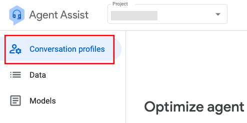 1. Agent Assist 콘솔로 이동하여 페이지 왼쪽의 대화 프로필 메뉴 옵션을 클릭합니다.