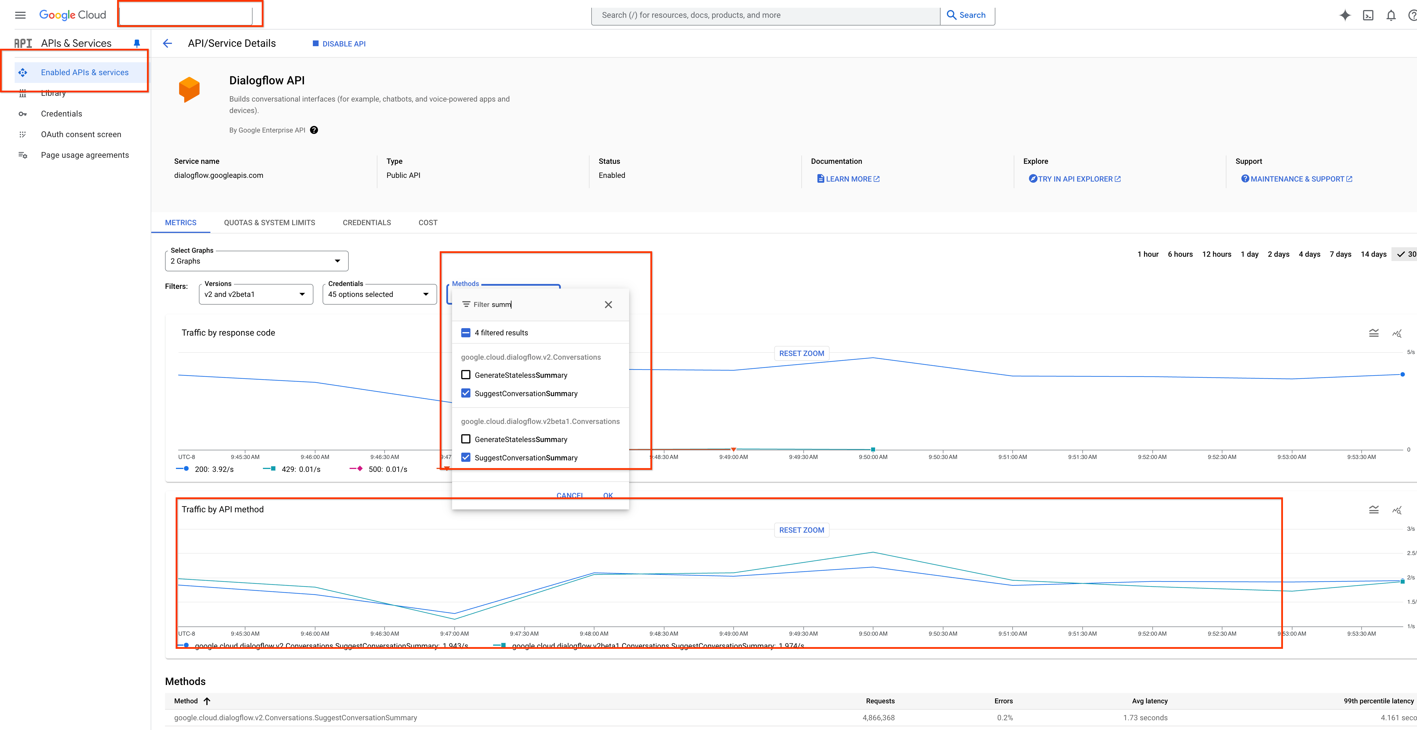 - Clique em APIs e serviços ativados.