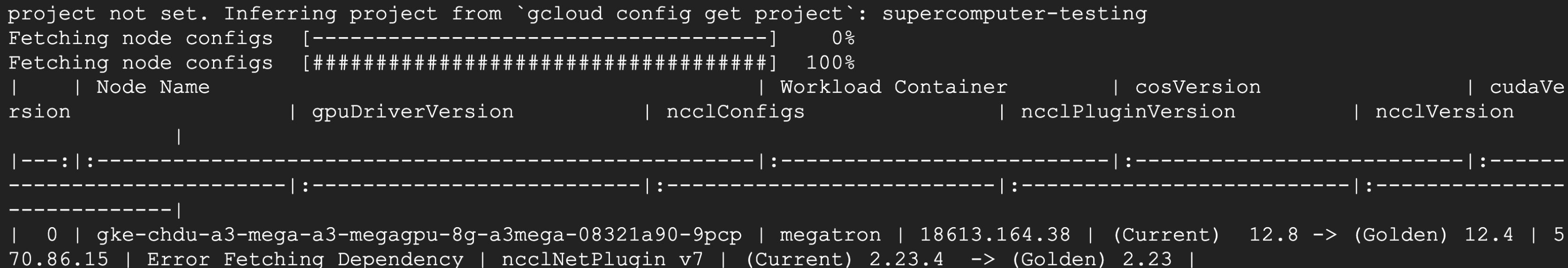 --no-diffフラグを追加します。cluster_diag -o ORCHESTRATOR configcheck GPU_TYPE