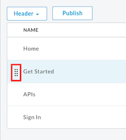 ) 위로 마우스 버튼을 길게 클릭합니다. - 메뉴 항목을 드래그하여 API 앞의 위치로 드래그한 다음 마우스 버튼을 놓습니다.
