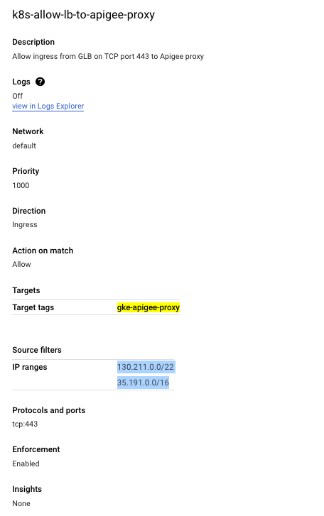 target-taglikegke-apigee-proxyand source IP ranges like130.211.0.0/22and35.191.0.0/16over the443 TCPport: