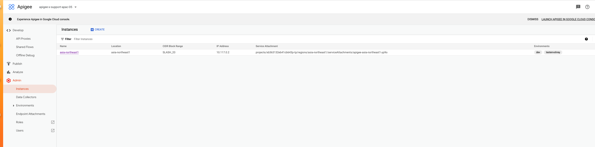- In the Apigee UI, click Admin > Instances.