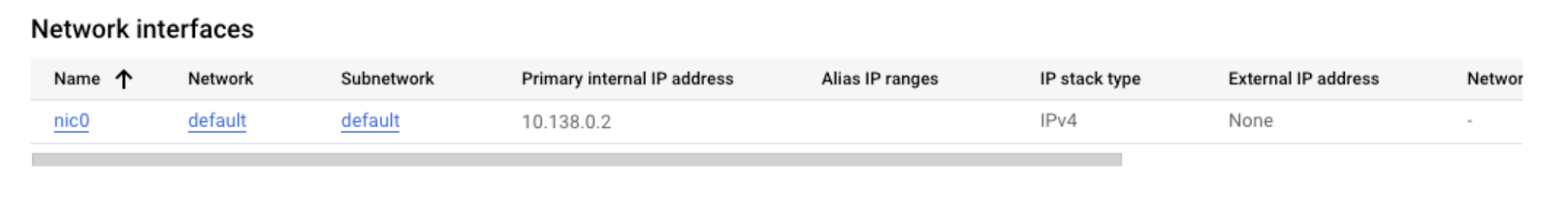 Scroll to the Network Interfaces section: