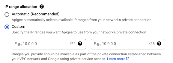 Durante o provisionamento da Apigee, se você selecionar um intervalo CIDR de rede que não esteja completamente disponível, uma mensagem de erro poderá ser exibida.