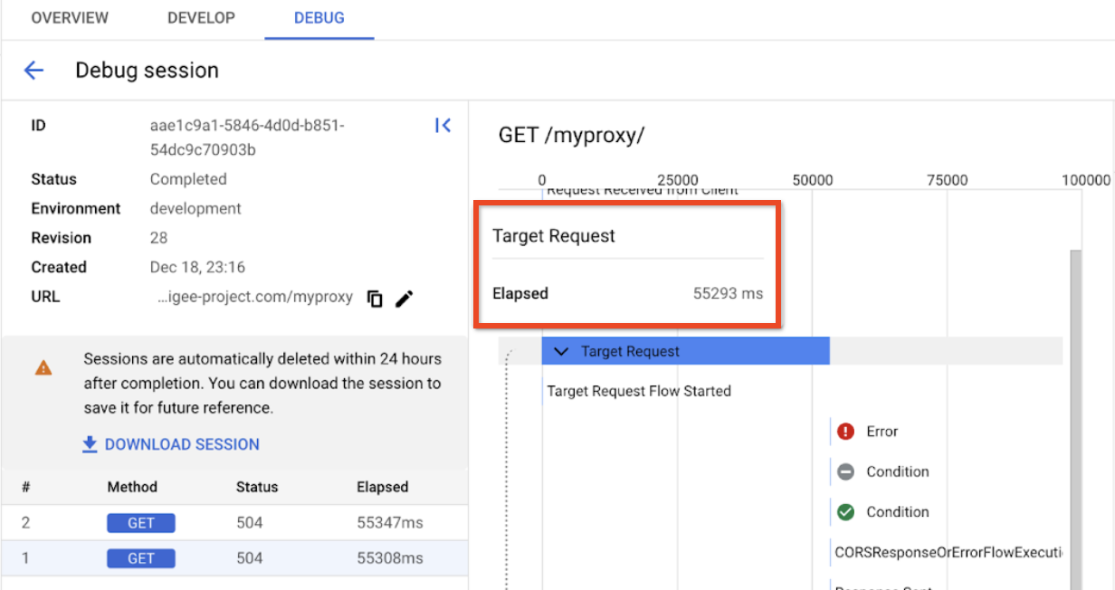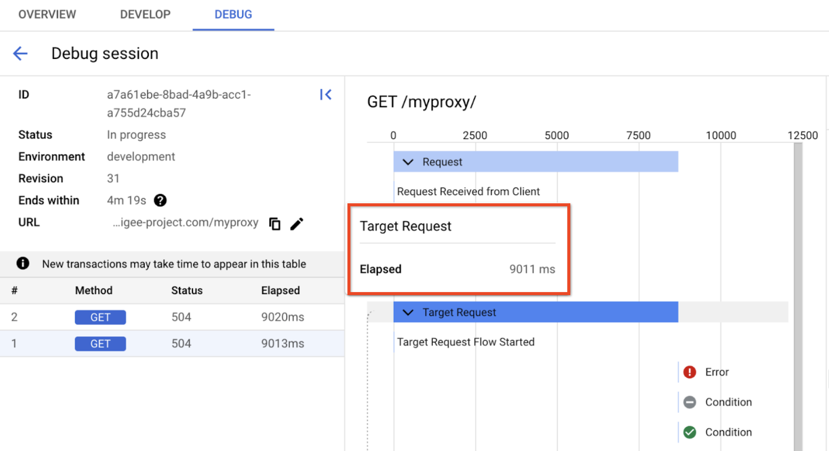 | Slow target | The target doesn't produce a timely response. | Apigee X and Apigee hybrid |