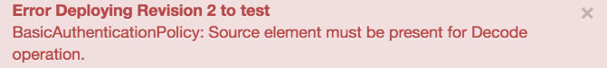 Error Deploying Revision revision_number to env_name BasicAuthenticationPolicy: Source element must be present for Decode operation.