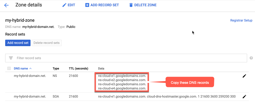 15. Inserisci i server dei nomi di dominio che hai copiato dalla pagina Cloud DNS di Network Services: