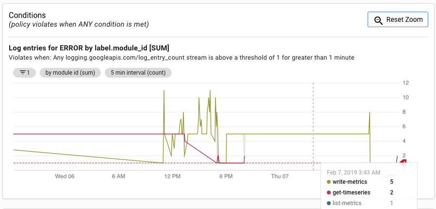 Misalnya, Anda dapat memantau tingkat error dengan menggunakan metrik log_entry_count