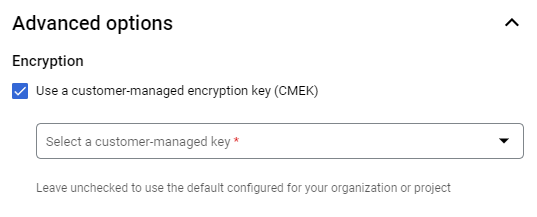 Obtén más información sobre las opciones de encriptación en Google Cloud. Para obtener información específica sobre las CMEK, incluidas sus ventajas y limitaciones, consulta Claves de encriptación administradas por el cliente.