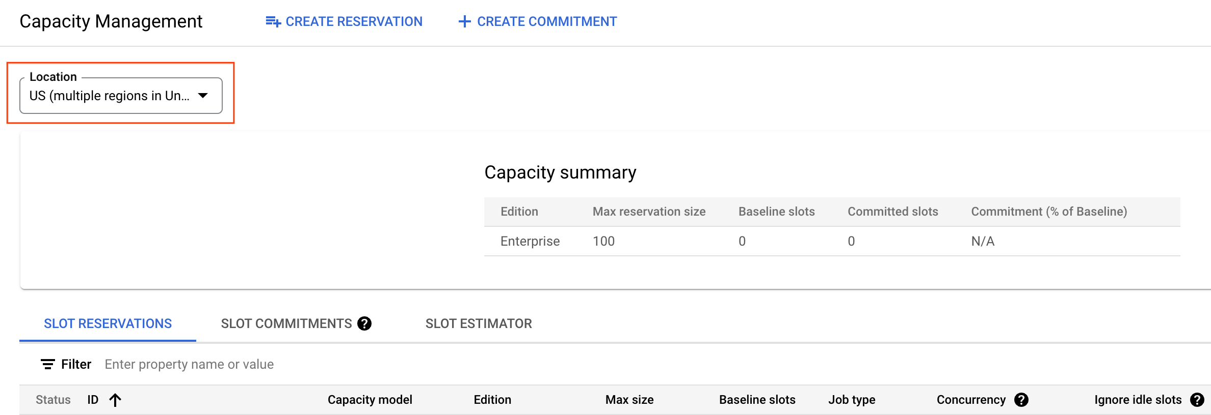 予約はリージョン リソースです。クエリは、クエリで参照されるテーブルと同じロケーションで実行されます。