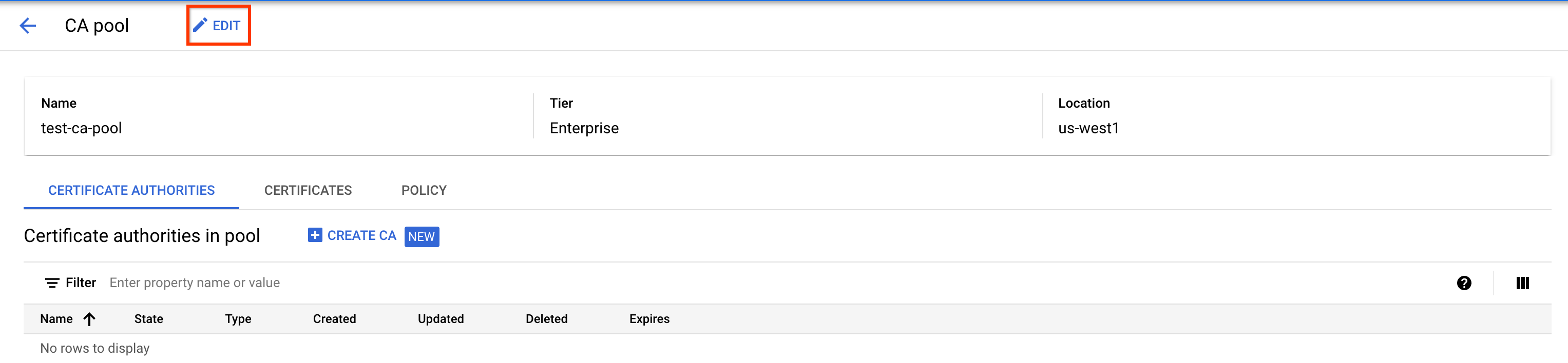 CA 풀 관리자 탭에서 수정하려는 CA 풀의 이름을 클릭합니다.