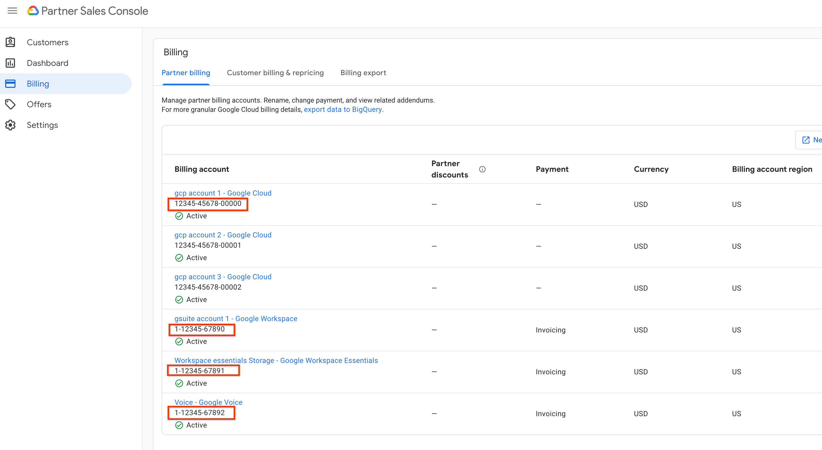 Pour exporter les données de facturation de plusieurs comptes Partner Sales Console, procédez comme suit :