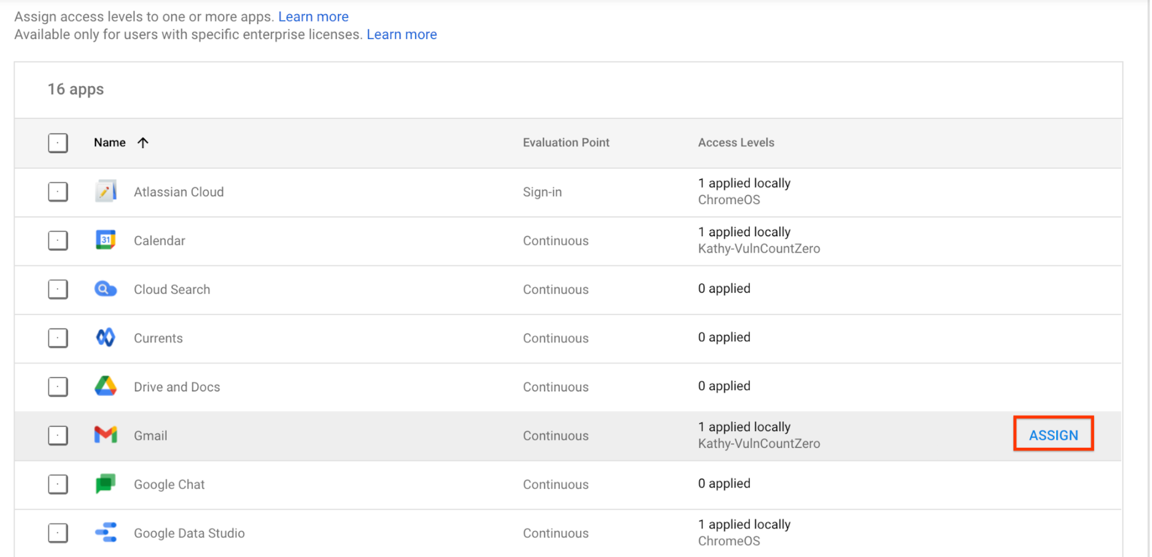您可以指派自訂存取層級,控管應用程式的存取權。這些應用程式包括 Google Workspace 應用程式,以及受 Identity-Aware Proxy 保護的應用程式(也稱為受 IAP 保護的資源)。 Google Cloud 您可以為應用程式指派一或多個存取層級。如果您選取多個存取層級,使用者裝置只需符合「其中一個」存取層級的條件,即可取得應用程式存取權。
