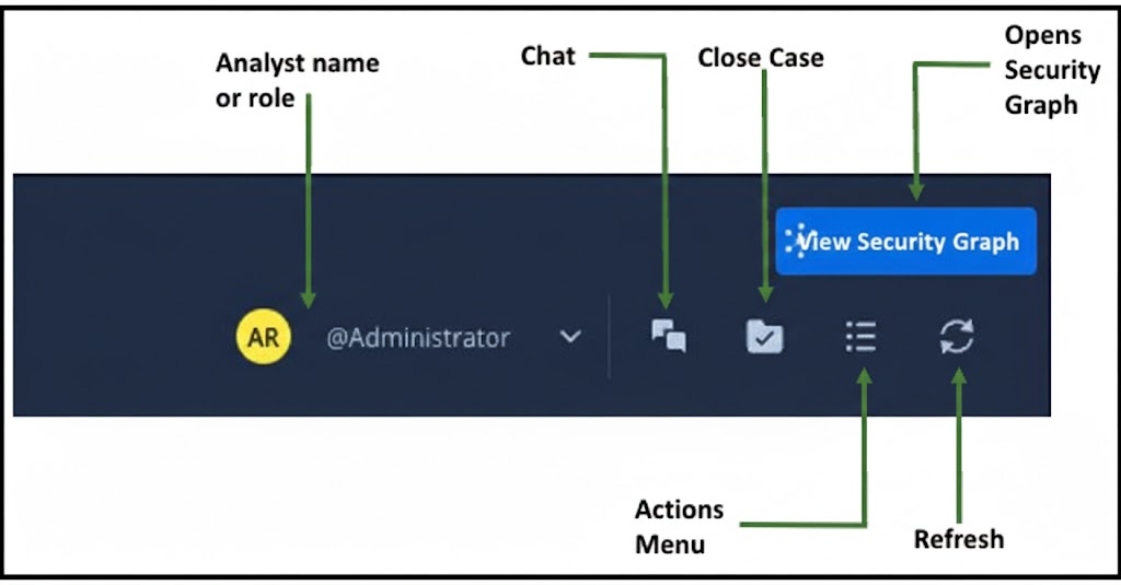 ケースの上部バーの右側には、次の詳細が表示されます。