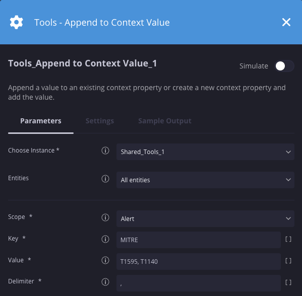 In this scenario, we’re adding values “T1595” and “T1140” to an existing context key of “MITRE”.