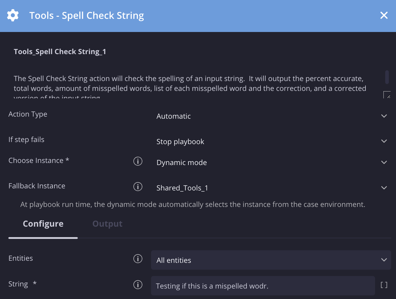 | String | String | N/A | Yes | Specify the string that will be checked for misspellings. |