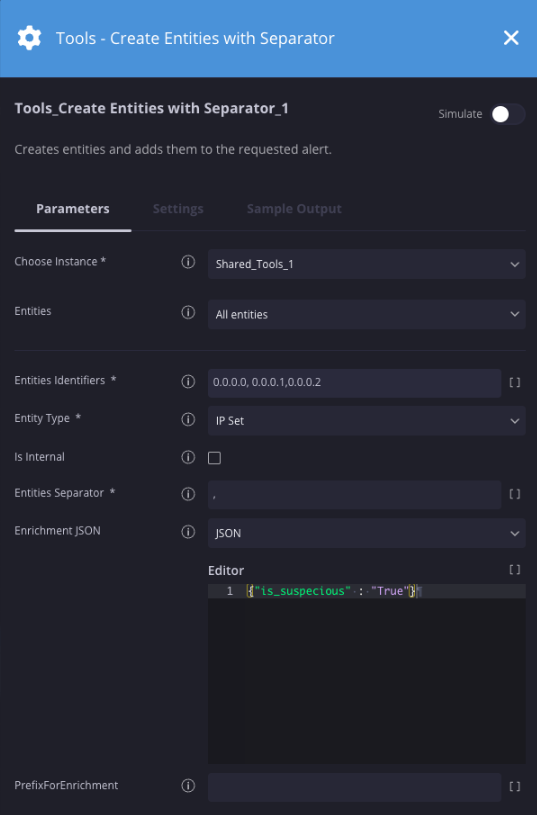 | Entities Separator | String | , | Yes | Specify the delimiter used in the entities identifiers field. |