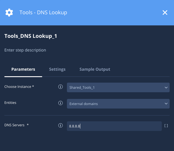 The following lists the types of actions you can perform with the Tools power-up.DNS Lookup