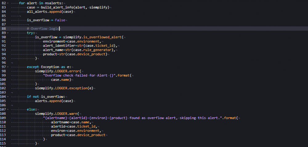 alerta de cada um usando a função build_alert_info definida anteriormente. Ele anexa cada alerta à lista all_alerts, inicializada anteriormente. A próxima parte da lógica do conector processa o transbordamento.