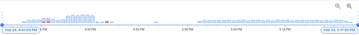 No histograma de registros, você pode ver os erros e avisos indicados com as cores vermelha e laranja: