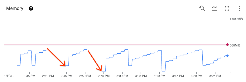 Il numero di attività posticipate è visibile nella metrica task_count, che viene visualizzata anche nella dashboard di Monitoring del tuo ambiente. Ogni trigger crea alcune risorse, ad esempio connessioni a risorse esterne, che consumano memoria.