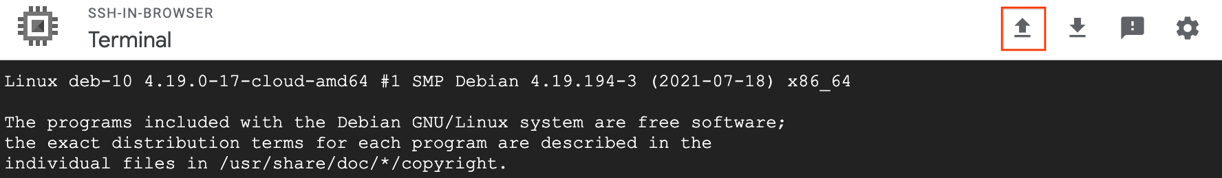 A Google Cloud CLI fornece um utilitário de transferência de arquivos Secure Copy Protocol (SCP) por meio de uma conexão SSH estabelecida.