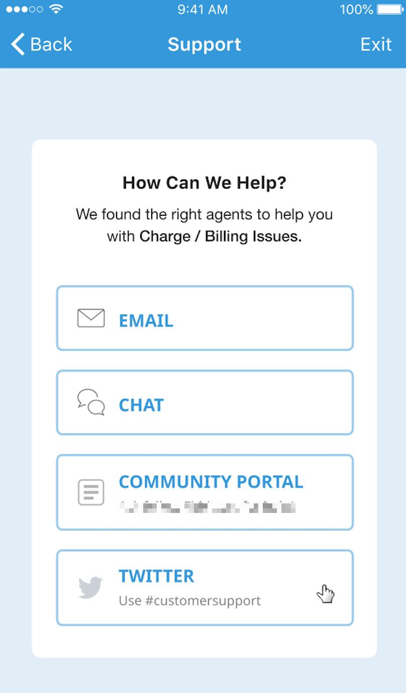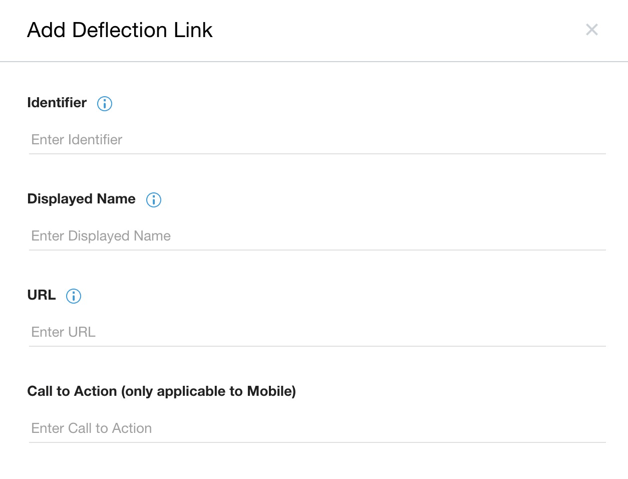 Com os links de redirecionamento externo, você pode oferecer outras opções de suporte além das opções padrão de chat, ligação e e-mail. Por exemplo, adicione um link para as perguntas frequentes sobre faturamento à sua fila de faturamento ou links para seus canais de mídia social. Os links de redirecionamento externos podem ser configurados como as únicas opções de suporte.
