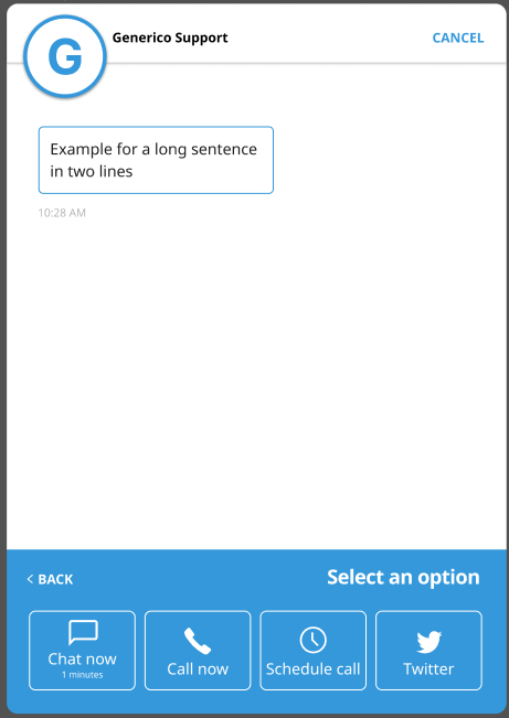 Insira uma mensagem proativa na forma de uma pergunta, como "Precisa de ajuda?". As respostas serão sempre SIM/NÃO, e a tela seguinte será ditada pelas subfilas configuradas nas configurações da fila. A mensagem padrão depois que eles selecionam "Sim" é "Como podemos ajudar?"