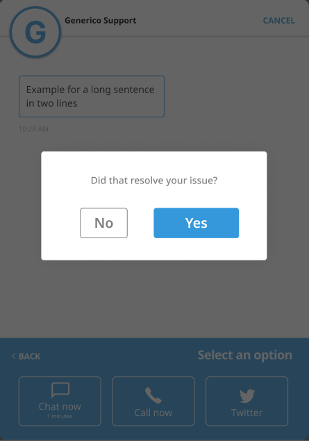 Ao retornar à sessão de suporte depois de acessar um link de desvio externo, o consumidor recebe um pop-up perguntando Isso resolveu seu problema?