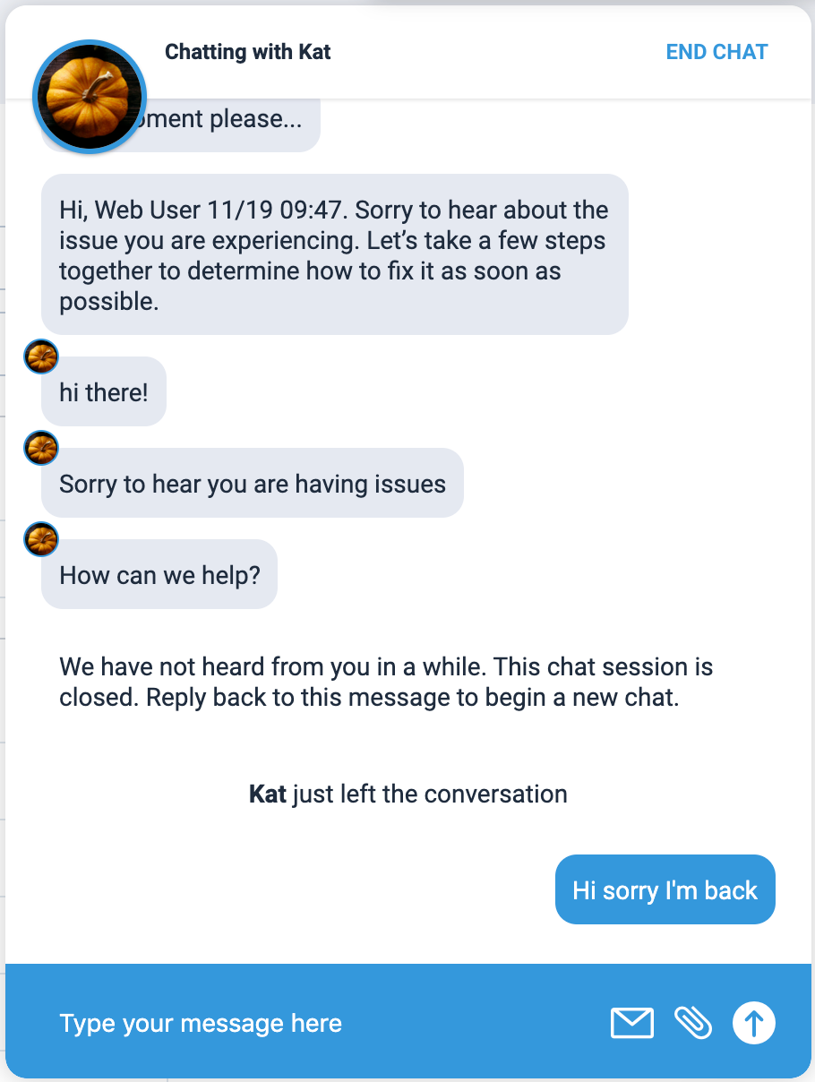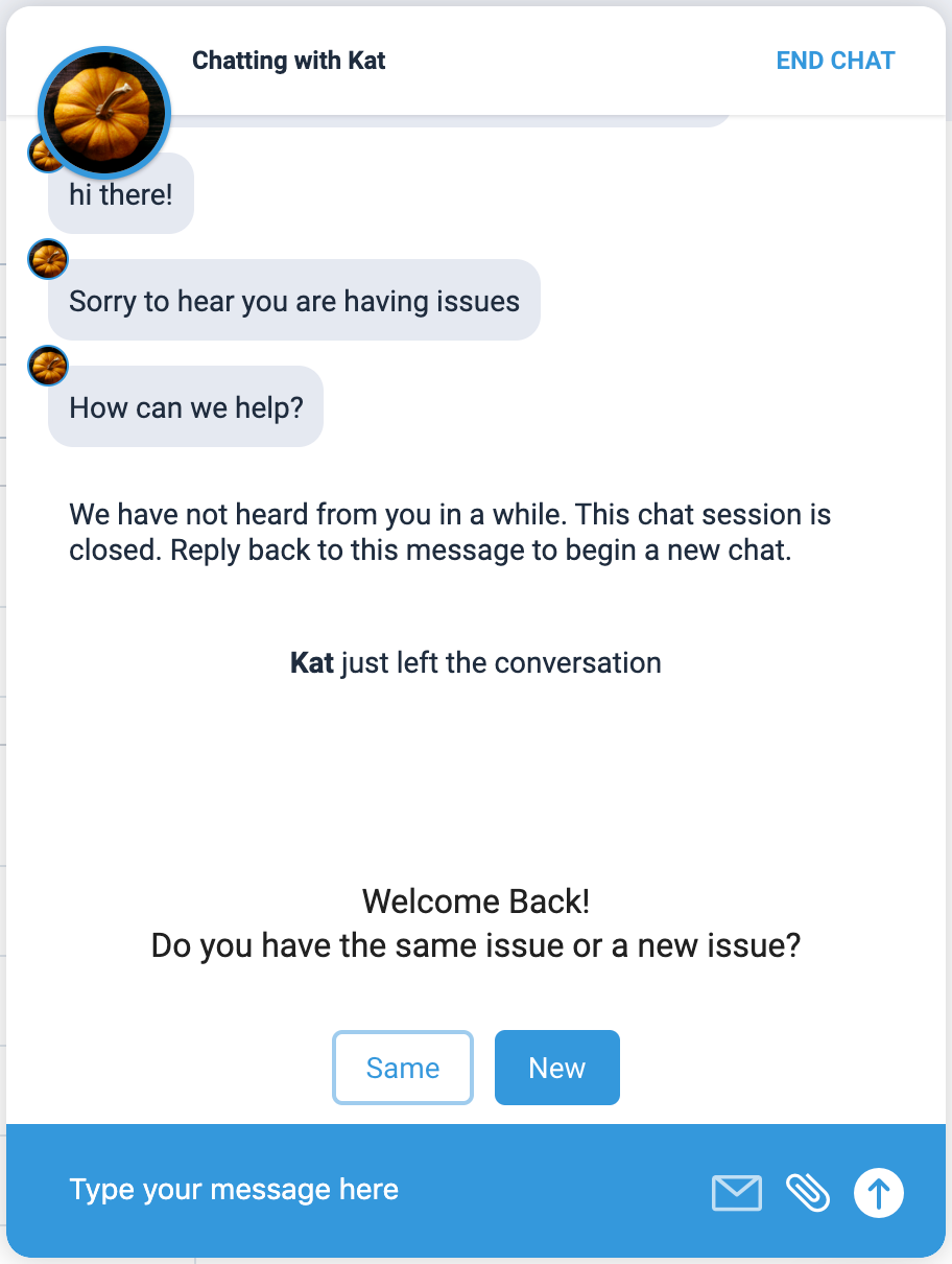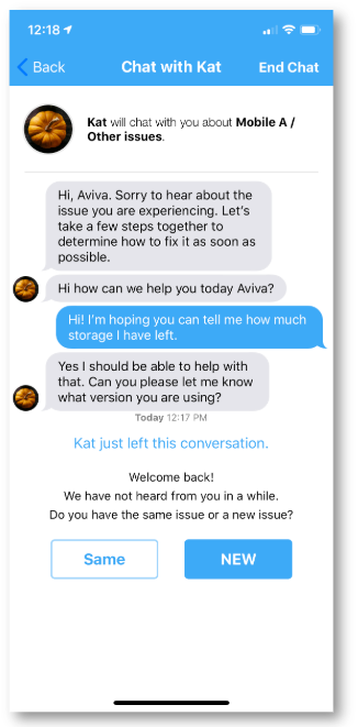 Somente para o consumidor: o histórico de conversa aparece nos widgets de chat do SDK da Web e dos SDKs para dispositivos móveis para usuários finais.