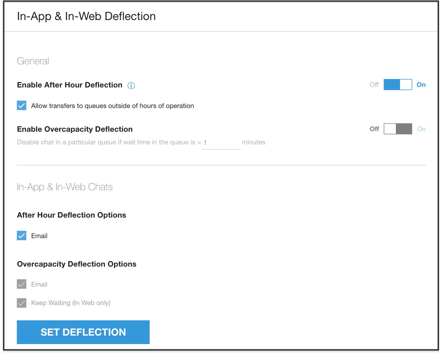 Acesse Dispositivos móveis > Chats na Web > Opções de redução de excesso de capacidade.