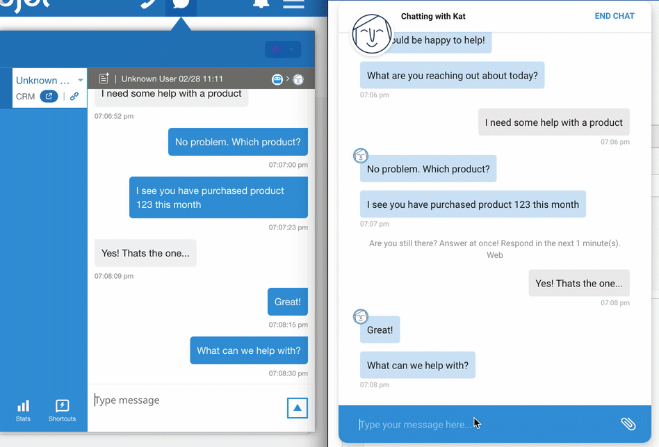 Com a Prévia da mensagem, os atendentes podem ver o que o consumidor está digitando antes de enviar a mensagem. Permitir que os atendentes se preparem proativamente para as consultas recebidas do consumidor realizando ações como recuperar informações da conta do cliente ou verificar o status de um pedido antes que a mensagem seja enviada. Ao se prepararem melhor para as consultas dos consumidores, os atendentes podem diminuir significativamente o tempo médio de espera e melhorar a experiência geral do consumidor.