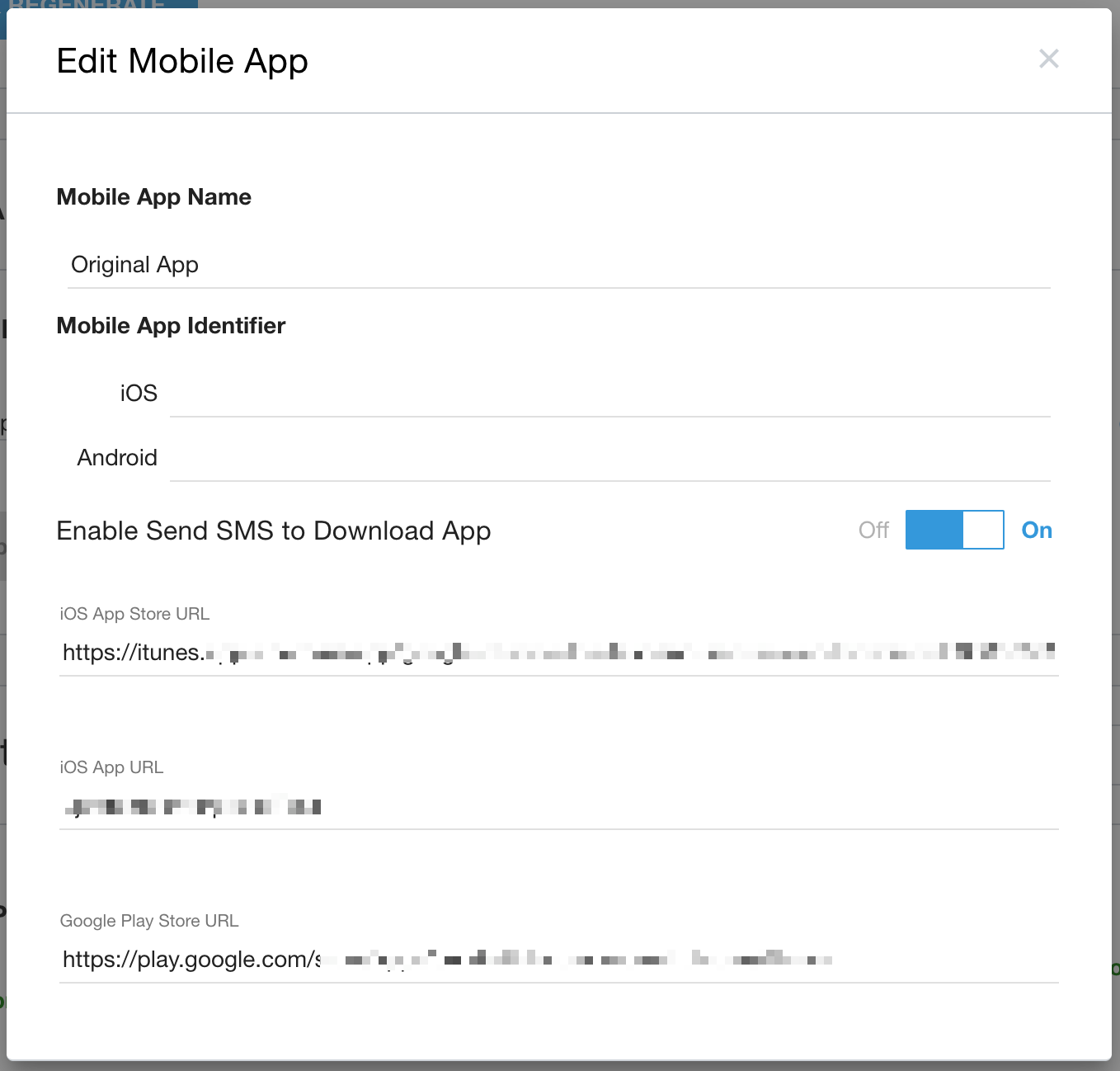 Per preparare l'app esistente per la modalità MMA, fai clic sull'icona Modifica (a forma di matita) e compila i campi obbligatori nella finestra Modifica app mobile.
