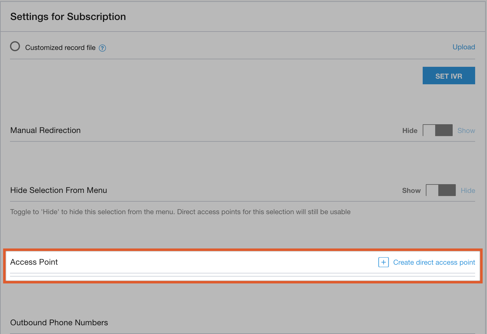 Nelle impostazioni del menu della coda, scorri fino alla sezione Punto di accesso diretto.