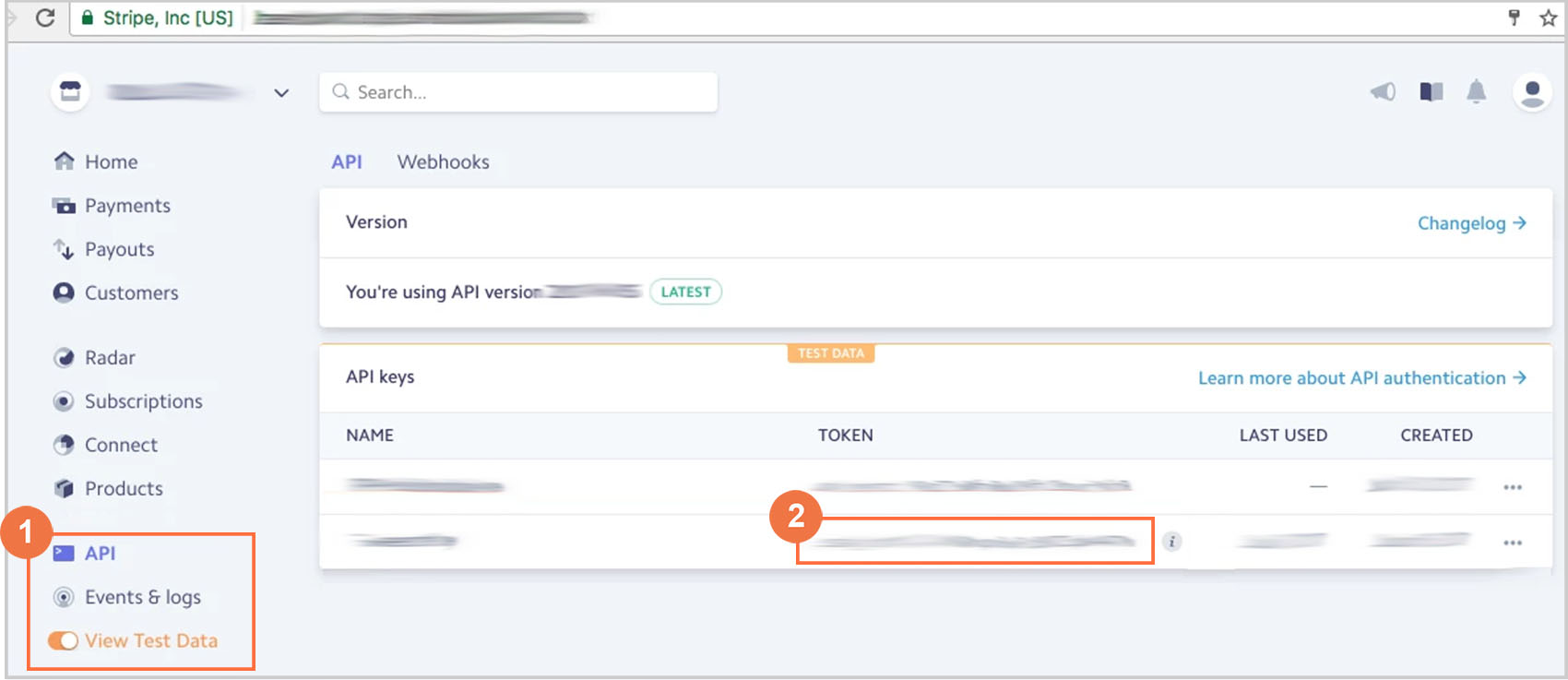 Dans votre compte Stripe, activez l'option Afficher les données de test.