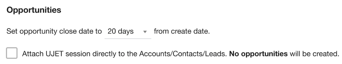 • Opportunity close date - set the default time period for closing the opportunities which are created.