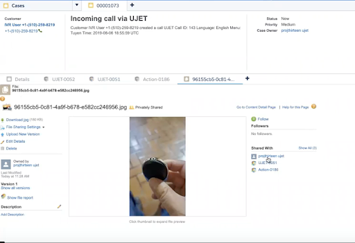 アカウント ID とケース ID を選択すると、[Call](電話)をクリックして発信します。