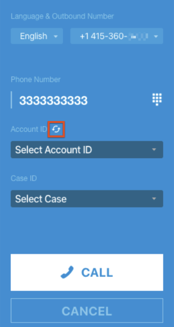 Depois que o ID da conta e do caso são selecionados, Ligar faz a chamada externa.