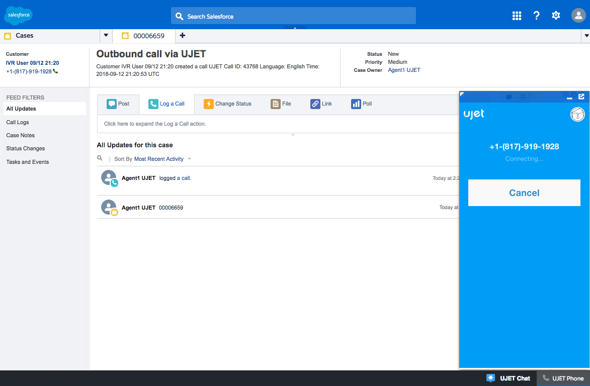 Setelah Akun dan ID Kasus dipilih, Panggil akan melakukan panggilan keluar.