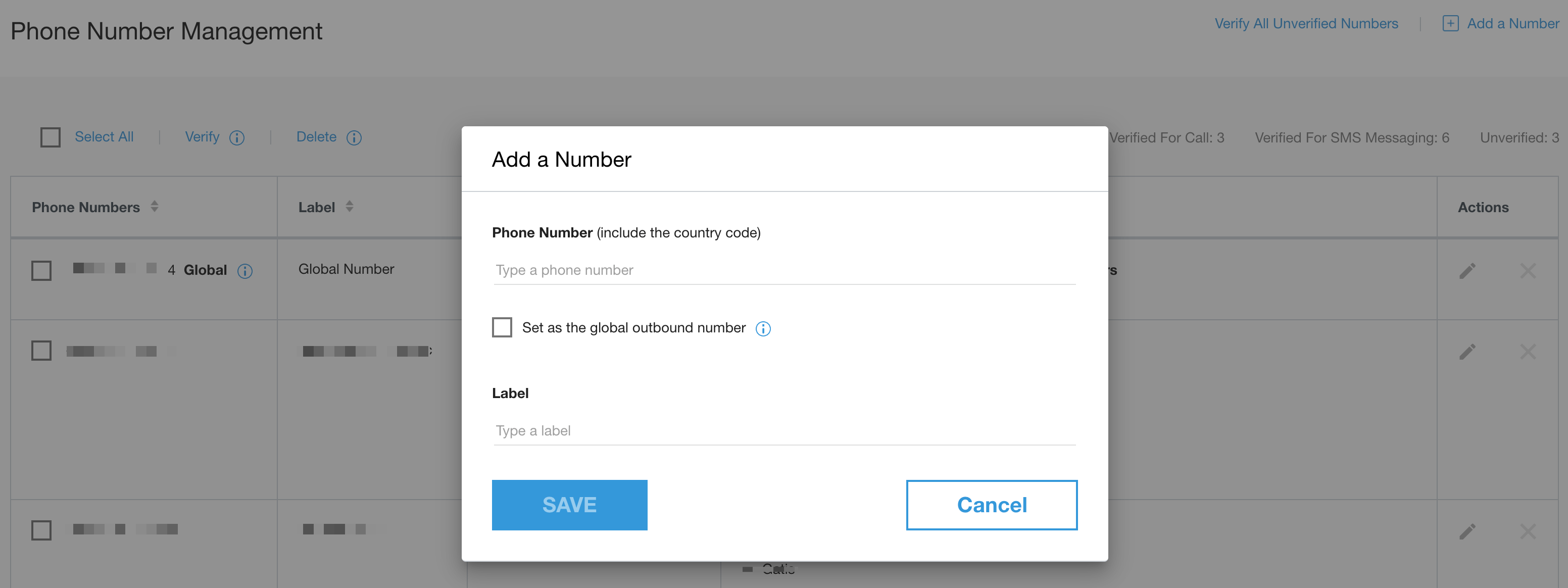 Agrega y verifica los números en la página Administración de números de teléfono.