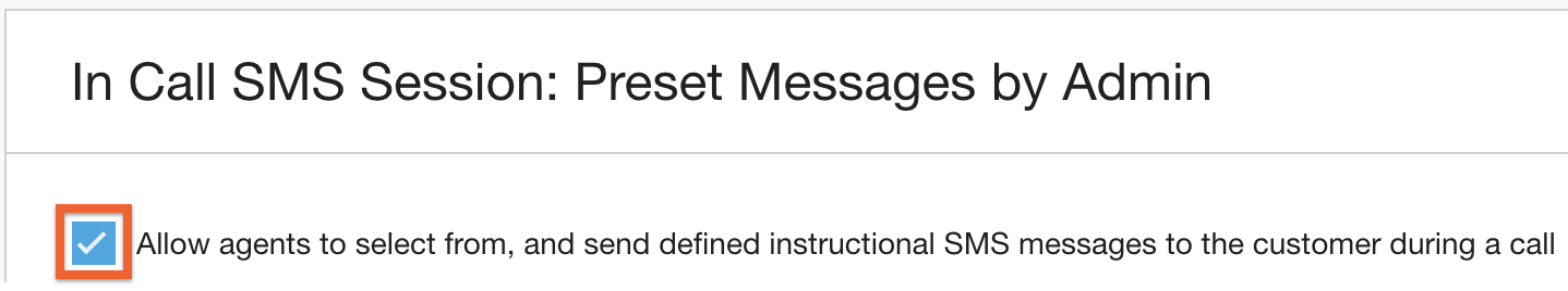 Las sesiones de SMS finalizan cuando termina la llamada, sin importar el motivo, y no se agregarán mensajes nuevos al ticket o caso ni estarán disponibles en el adaptador del agente. A continuación, se incluyen dos mensajes opcionales, pero recomendados, que se pueden personalizar y enviar de forma predeterminada después de completar la sesión de SMS.