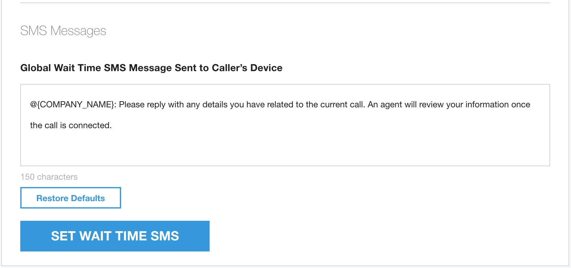 Penelepon akan dikirimi SMS dengan konten pesan Global Wait Time SMS Message Sent to Caller's Device.
