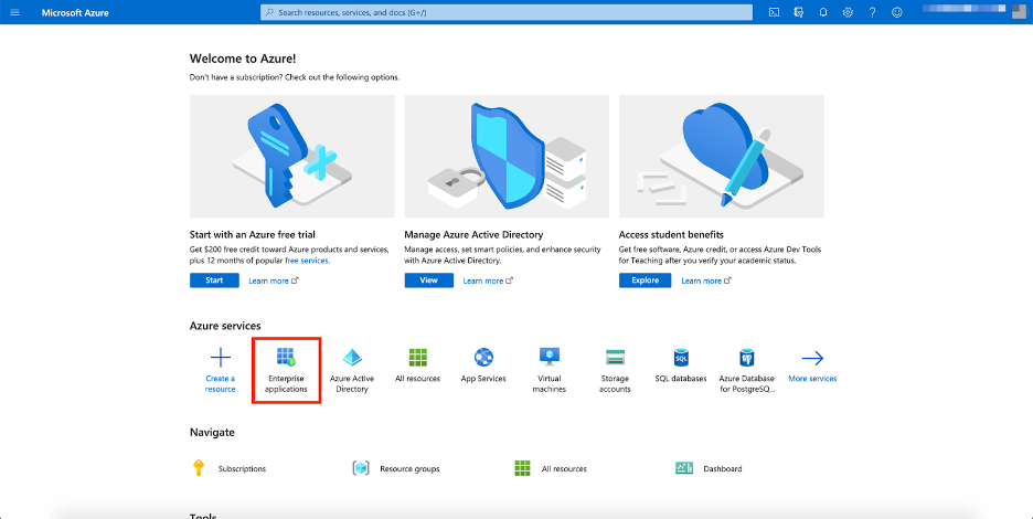 Navegue até o portal do Azure e clique em Aplicativos empresariais: