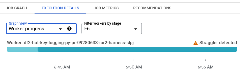 PCollection. Para obtener más información, consulta el artículo Solucionar problemas de retrasos causados por teclas de acceso rápido de este documento.Trabajador lento. En un trabajador lento, los elementos de trabajo se ejecutan más lentamente de lo habitual. A menudo, la velocidad de procesamiento de un trabajador lento es inferior a la de los trabajadores que realizan tareas similares en la misma fase. Hay muchos factores que pueden provocar que los trabajadores vayan lentos, como la falta de recursos de CPU, el thrashing, la arquitectura de la máquina y los procesos de los trabajadores bloqueados. Cuando se produce una ralentización, Dataflow intenta mitigar el problema automáticamente. Para obtener más información, consulta Mitigar automáticamente los retrasos causados por trabajadores lentos en este documento.