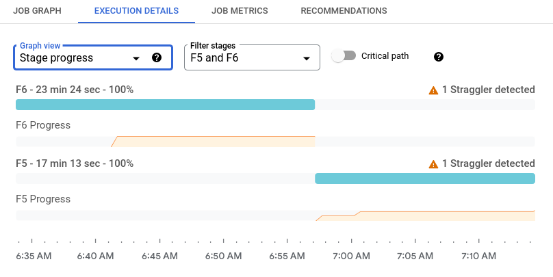 Dataflow détecte les retardataires qui surviennent lors des jobs par lot. Si Dataflow détecte un retardataire, il tente également de déterminer la cause de ce retard.