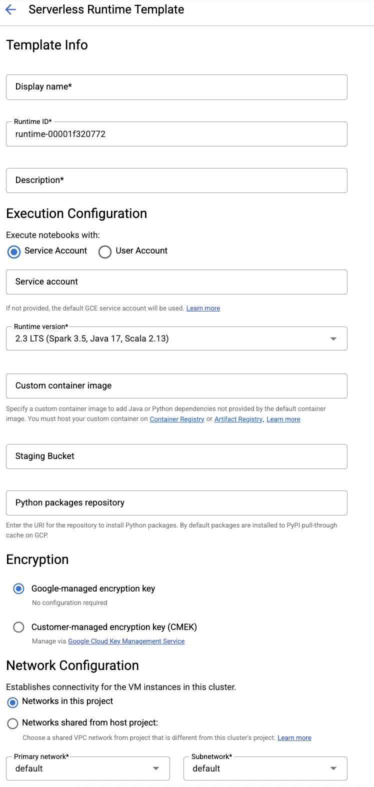 - Il cluster Dataproc o il modello di runtime serverless da utilizzare
