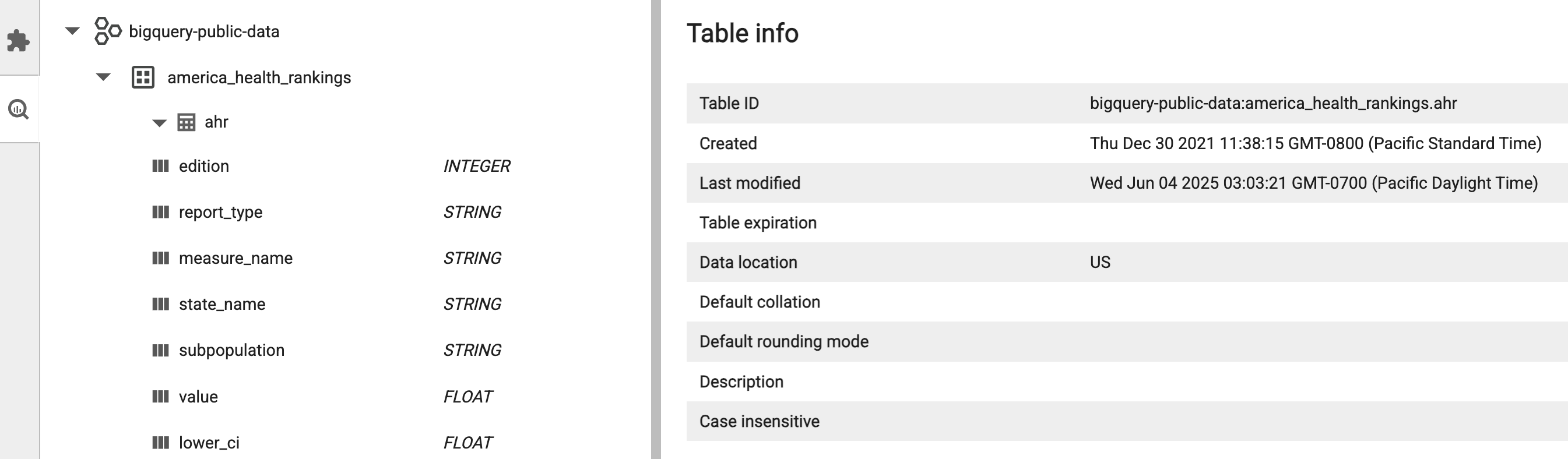 - Browse, inspect, and preview BigQuery datasets.