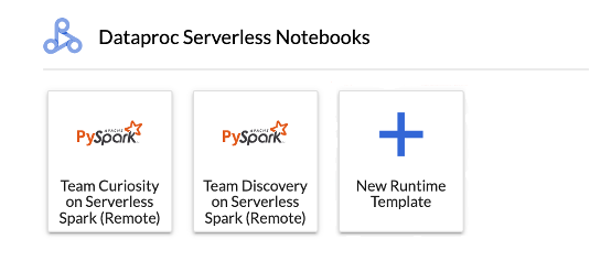 Serverless for Apache Spark runtime templates (also called session templates) contain configuration settings for executing Spark code in a session. You can create and manage runtime templates using Jupyterlab or the Google Cloud CLI.