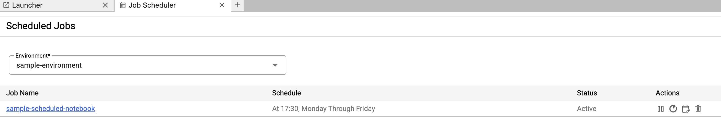 After the notebook is successfully scheduled, the job name appears in the list of scheduled jobs in the Cloud Composer environment.