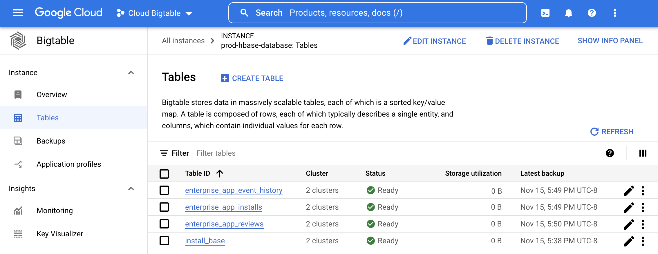 כדי להתחיל להשתמש ב-Bigtable, צריך ליצור אשכול וטבלאות לאחסון נתונים שאוחסנו בעבר ב-HBase. פועלים לפי השלבים שמופיעים בתיעוד של Bigtable בנושא יצירת מופע, אשכול וטבלאות עם אותה סכימה כמו הטבלאות של HBase. כדי ליצור טבלאות באופן אוטומטי מ-DDL של טבלאות HBase, אפשר להשתמש בכלי לתרגום סכימות.